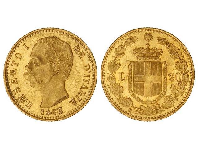 WORLD COINS: ITALY - 20 Liras. 1883-R. HUMBERTO I. AU. KM-21. EBC-.