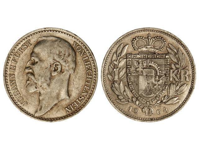 WORLD COINS: LIECHTENSTEIN - 1 Corona. 1904. PRÍNCIPE JUAN II. AR. Y-2. MBC+.