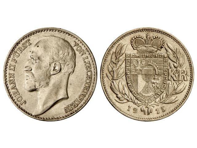 WORLD COINS: LIECHTENSTEIN - 1 Corona. 1915. PRÍNCIPE JUAN II. AR. Y-2. MBC+.