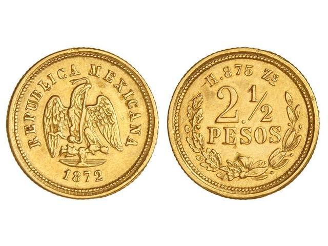 WORLD COINS: MEXICO - 2 1/2 Pesos. 1872. ZACATECAS. AU. Tirada: 1.300 piezas. (Golpecito en canto). KM-411.6. EBC-.