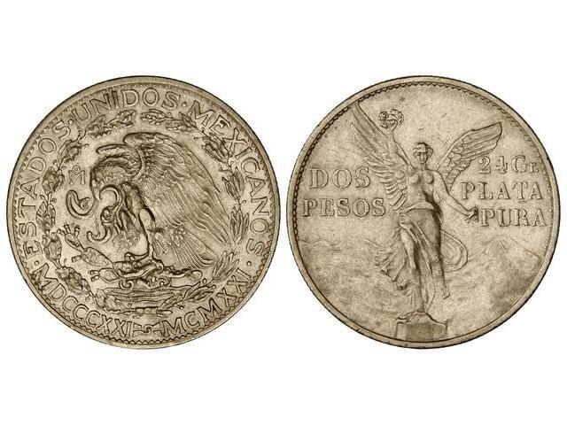 WORLD COINS: MEXICO - 2 Pesos. 1921-Mo. AR. Centenario Independencia. KM-462. MBC+.