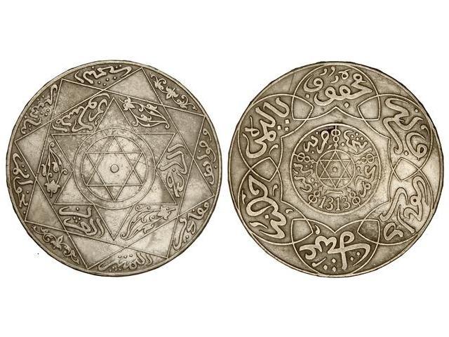 WORLD COINS: MOROCCO - 10 Dirhams. 1313 d.H. (1897 d.C.). ABD AL-AZIZ. AR. (Leves oxidaciones). MUY ESCASA. Y-13. MBC+.