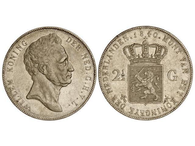 WORLD COINS: NETHERLANDS - 2 1/2 Gulden. 1840. GUILLERMO I. AR. (Rayitas y golpecitos). KM-67. MBC+.