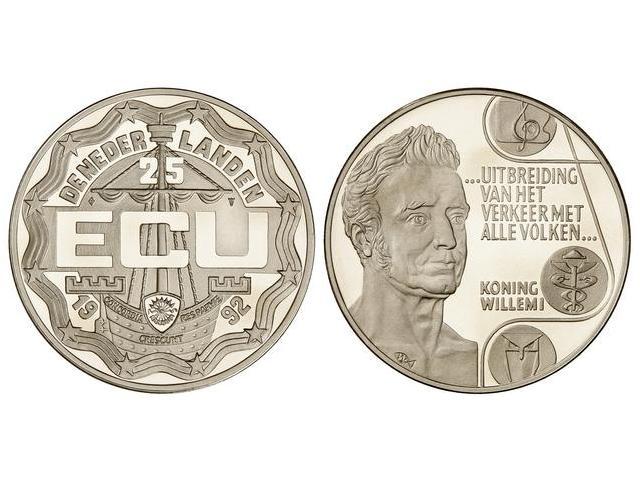 WORLD COINS: NETHERLANDS - 25 Ecu. 1992. GUILLERMO I. AR. En estuche. Schön-X36.1. PROOF.