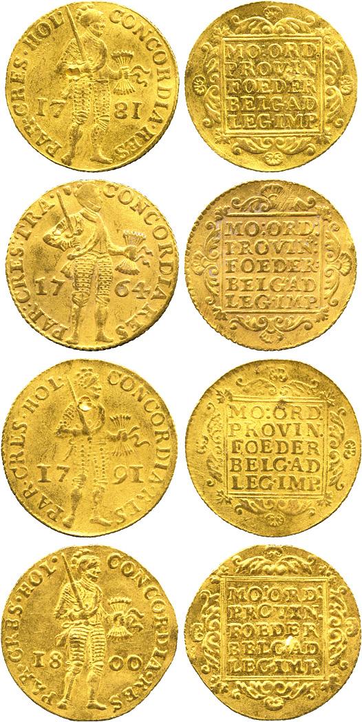 WORLD COINS. NETHERLANDS. Gold Ducats (4), 1764, 1781, 1791, 1800. All with some form of