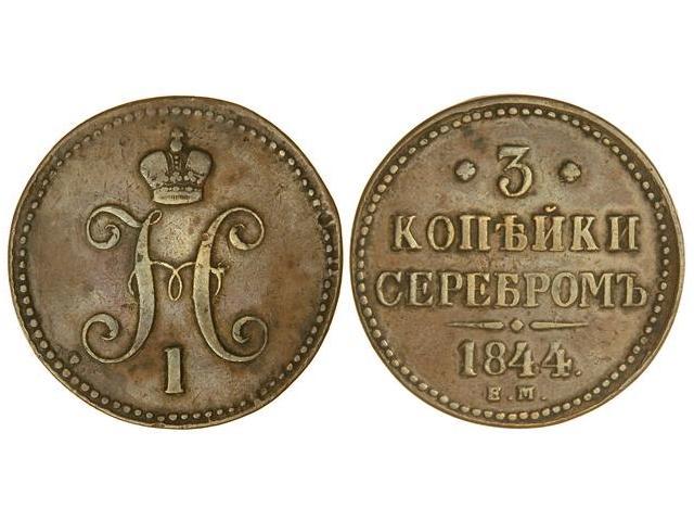 WORLD COINS: RUSSIA - 3 Kopeks. 1844-EM. NICOLÁS I. EKATERINBURG. AE. C-146.1. MBC.