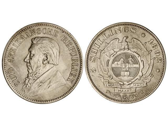 WORLD COINS: SOUTH AFRICA - 5 Chelines. 1892. AR. Carro con un solo vara. KM-8.1. MBC+.