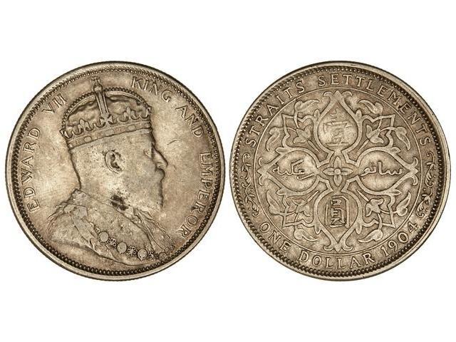 WORLD COINS: STRAITS SETTLEMENTS - 1 Dólar. 1904-B. EDUARDO VII. BOMBAY. AR. (Pequeñas rayitas y golpecitos). KM-25. MBC.