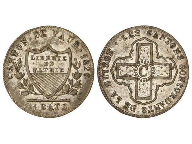 WORLD COINS: SWISS CANTONS - 1 Batz. 1828. VAUD. Ve. Acuñada sobre otra moneda. KM-20. EBC-.