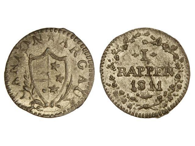 WORLD COINS: SWISS CANTONS - 1 Rappen. 1811. AARGAU. Ve. KM-15. MBC.