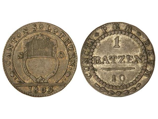 WORLD COINS: SWITZERLAND - 1 Batzen. 1809. SOLOTHURN. Ve. KM-66. MBC.