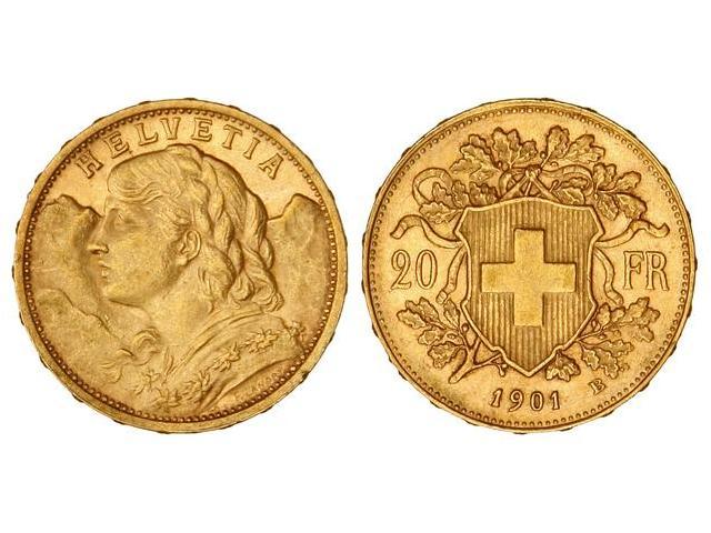 WORLD COINS: SWITZERLAND - 20 Francos. 1901-B. AU. (Pequeño golpecito en gráfila). KM-35.1. EBC.