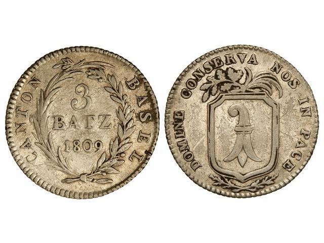 WORLD COINS: SWITZERLAND - 3 Batzen. 1809. BASILEA. AR. KM-198. MBC.