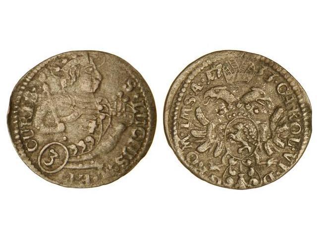 WORLD COINS: SWITZERLAND - 3 Kreuzer. 1733. CARLOS VI. CHUR. AR. KM-271. MBC-/MBC.