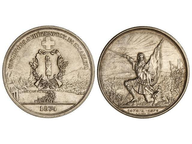 WORLD COINS: SWITZERLAND - 5 Francos. 1874. FESTIVAL DE TIRO: ST. GALLEN. AR. X-S12. EBC.