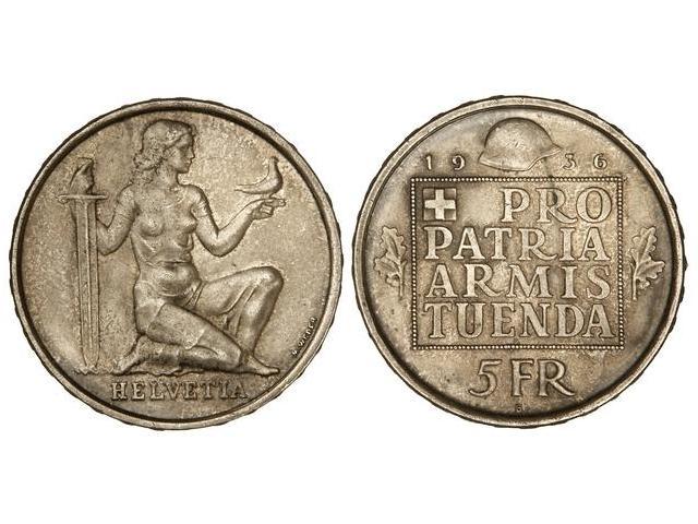 WORLD COINS: SWITZERLAND - 5 Francos. 1936-B. AR. Fundación del Ejército Confederado. KM-41. EBC+.