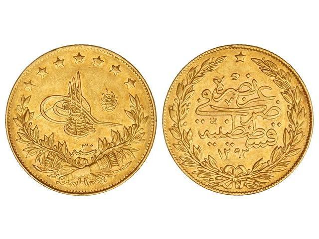 WORLD COINS: TURKEY - 100 Kurush. 1293 a.H. (1876 d.C.). ABDUL HAMID II. AU. Año 30. (Leves golpecitos en gráfila). KM-730. EBC-.
