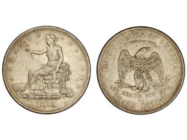 WORLD COINS: UNITED STATES - 1 Dólar de Comercio. 1875-CC. CARSON CITY. AR. (Pequeñas rayas y pequeños golpecitos). KM-108. MBC+.