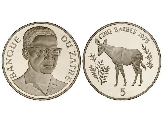WORLD COINS: ZAIRE - 5 Zaires. 1975. AR. Conservación de la Fauna. Tirada: 6.431 piezas. KM-10. PROOF.