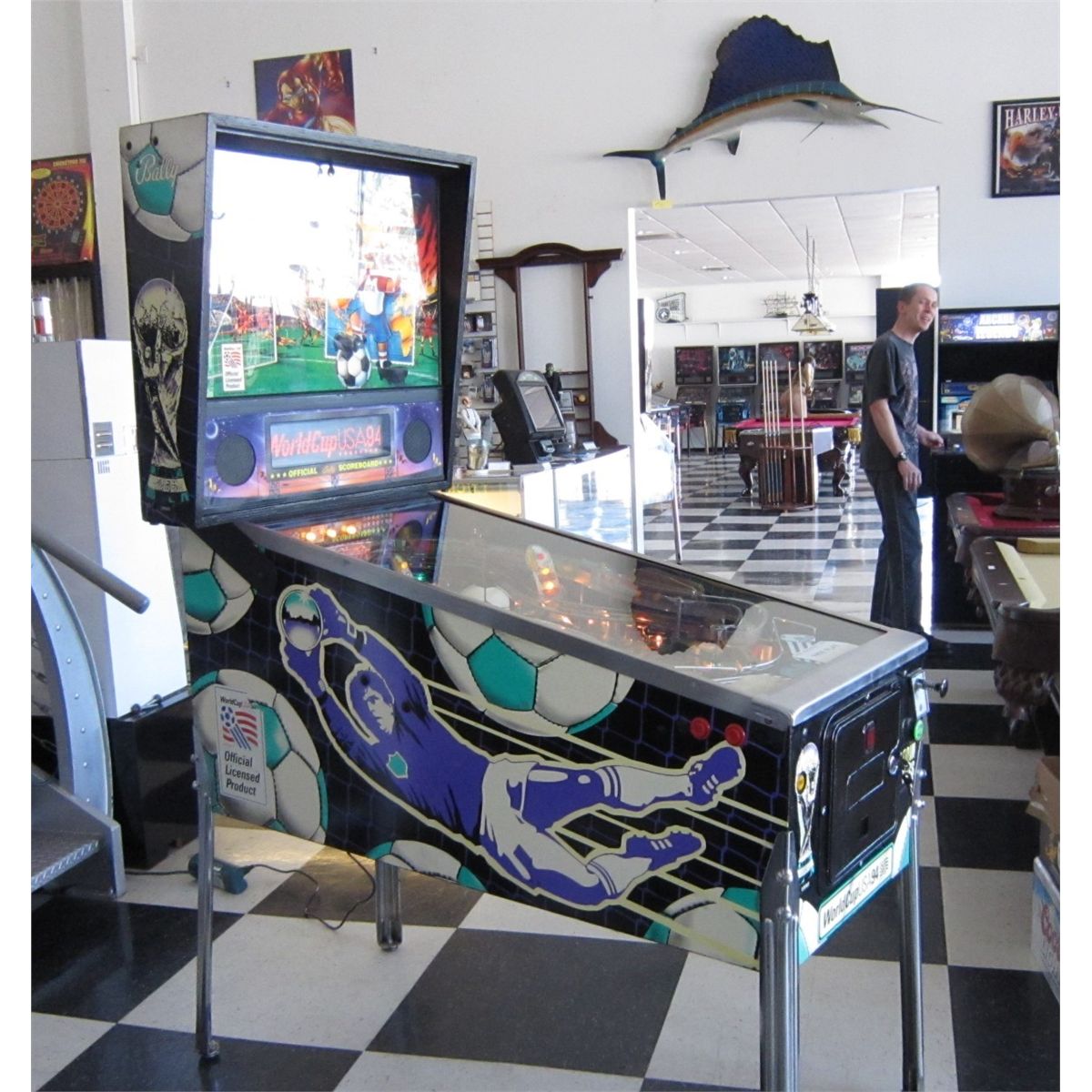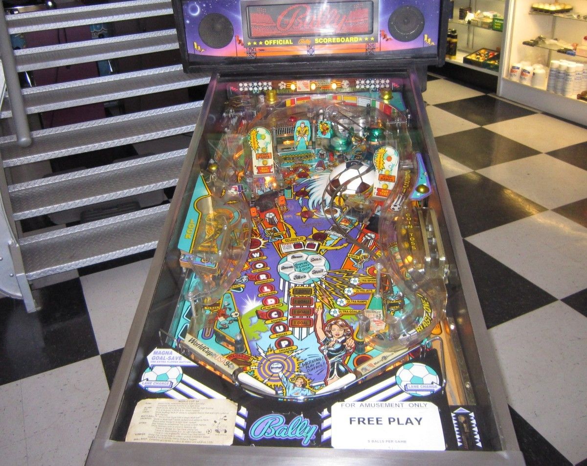 Highly sought Bally pin with many special features including: Spinning Soccer Ball Moving Goalkeeper Magnet Under Playfield Magnetic Ball Capture Works perfectly. A trained technician has checked every function for proper operation and cleaned and polished the playfield. Worn rubber and burnt bulbs have been replaced as needed.