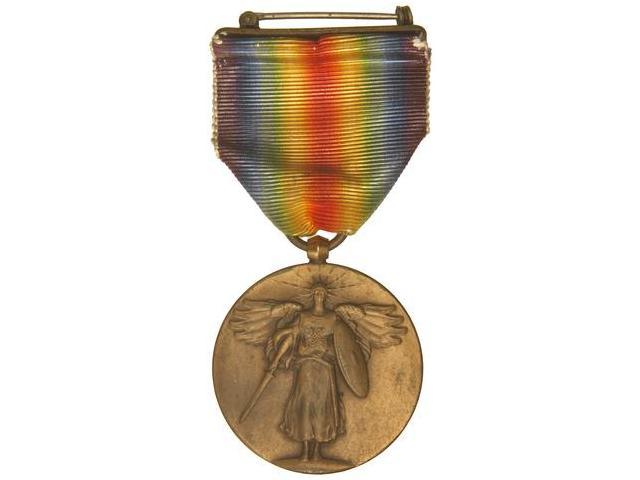 WORLD DECORATIONS - Medalla de la Victoria Aliada. 1914-1918. ESTADOS UNIDOS. I GUERRA MUNDIAL. Metal dorado. Ø 36 mm. Anilla, cinta y prendedor originales. EBC.