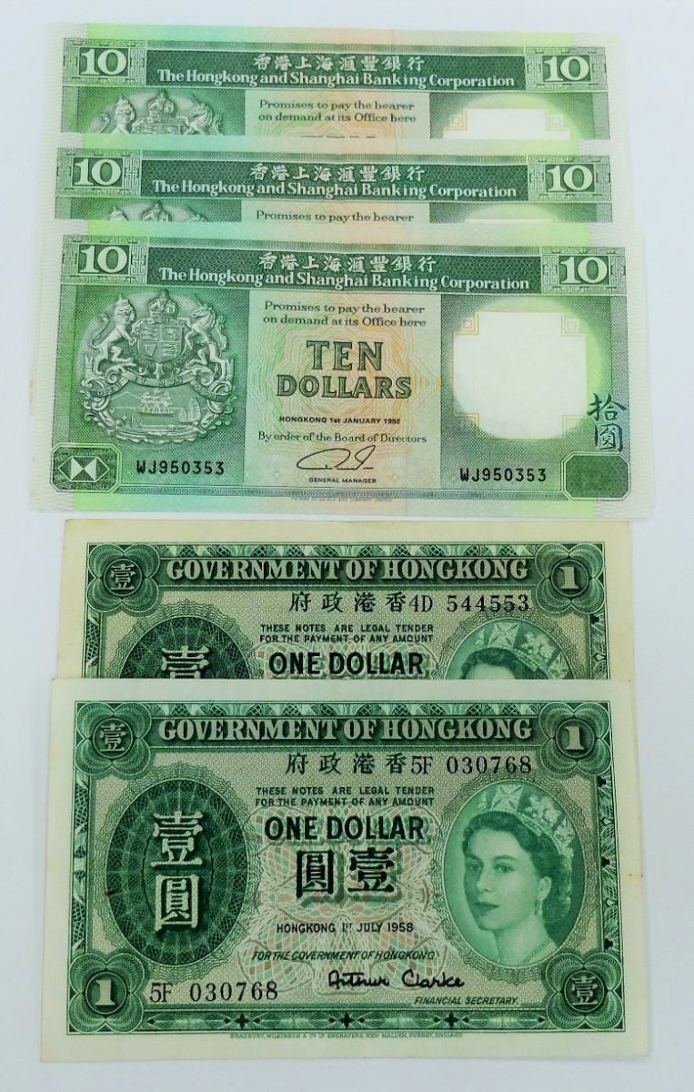 2X $1 1958, 4X $10 1992 IN SEQUENCE WITH MIDDLE FOLD,