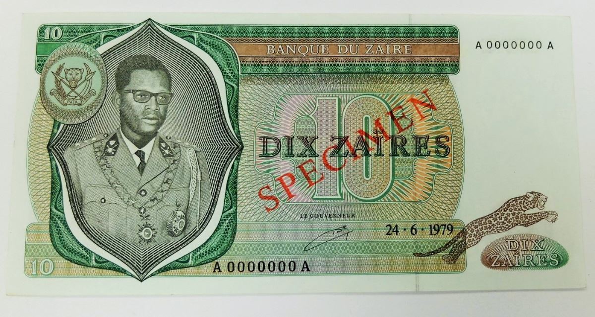 WORLD PAPER-ZAIRE SPECIMEN 1979 10 ZAIRES