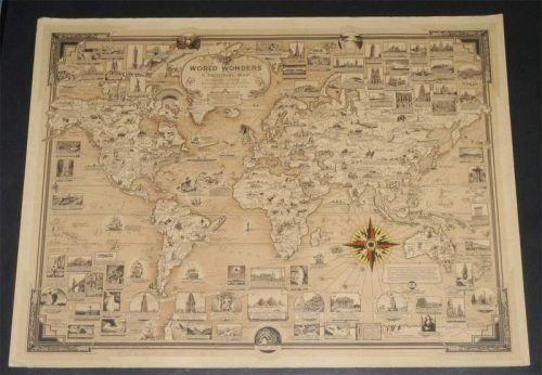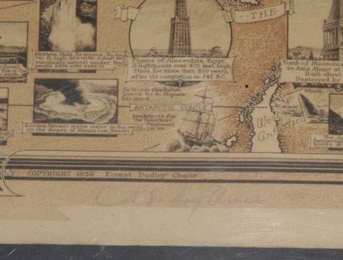 WORLD WONDERS MAP of The United States, by Ernest Dudley Chase, 1939, 19"x25", pencil signed