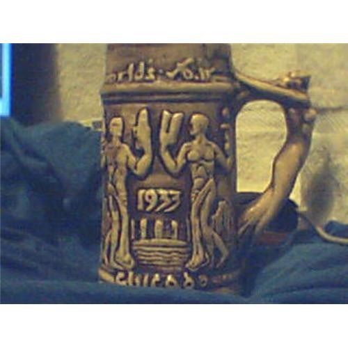 OLD WORLD'S FAIR CHICAGO 1933 CROCK MUG. I GOT THIS AT AN ESTATE SELL IN HOPKISVILLE, KY, 20 YEARS AGO. IT IS IN EXCELLENT CONDITION. THERE ARE NO CHIPS NO CRACKS OR BREAKS IN IT. IT IS A WONDERFUL COMMERATIVE OF THE 1933 WORLD'S FAIR.