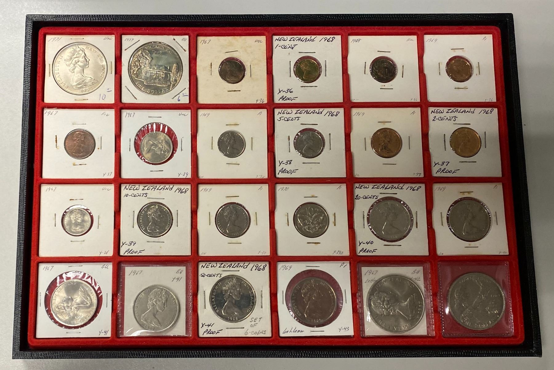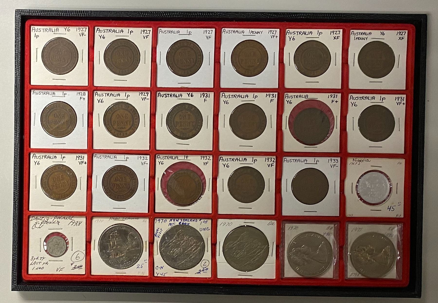 WORLDWIDE: LOT of 166 coins, including Australia (89 pcs), Biafra (1), Danzig (1), New Zealand (30), Nigeria (3), and Norway (42); average circulated grades, as well as some uncs, in consignor's holders, viewing recommended; retail value $725, lot of 166 pieces, ex Almer H. Orr III Collection.