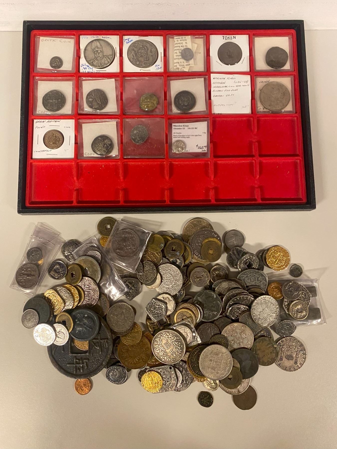 WORLDWIDE: LOT of 259 coins, a "dark cabinet" collection of approximately 259 numismatic forgeries, contemporary counterfeits, and museum copies, an interesting mix with little duplication, with a nice variety; retail value $400, lot of approximately 259 pieces.