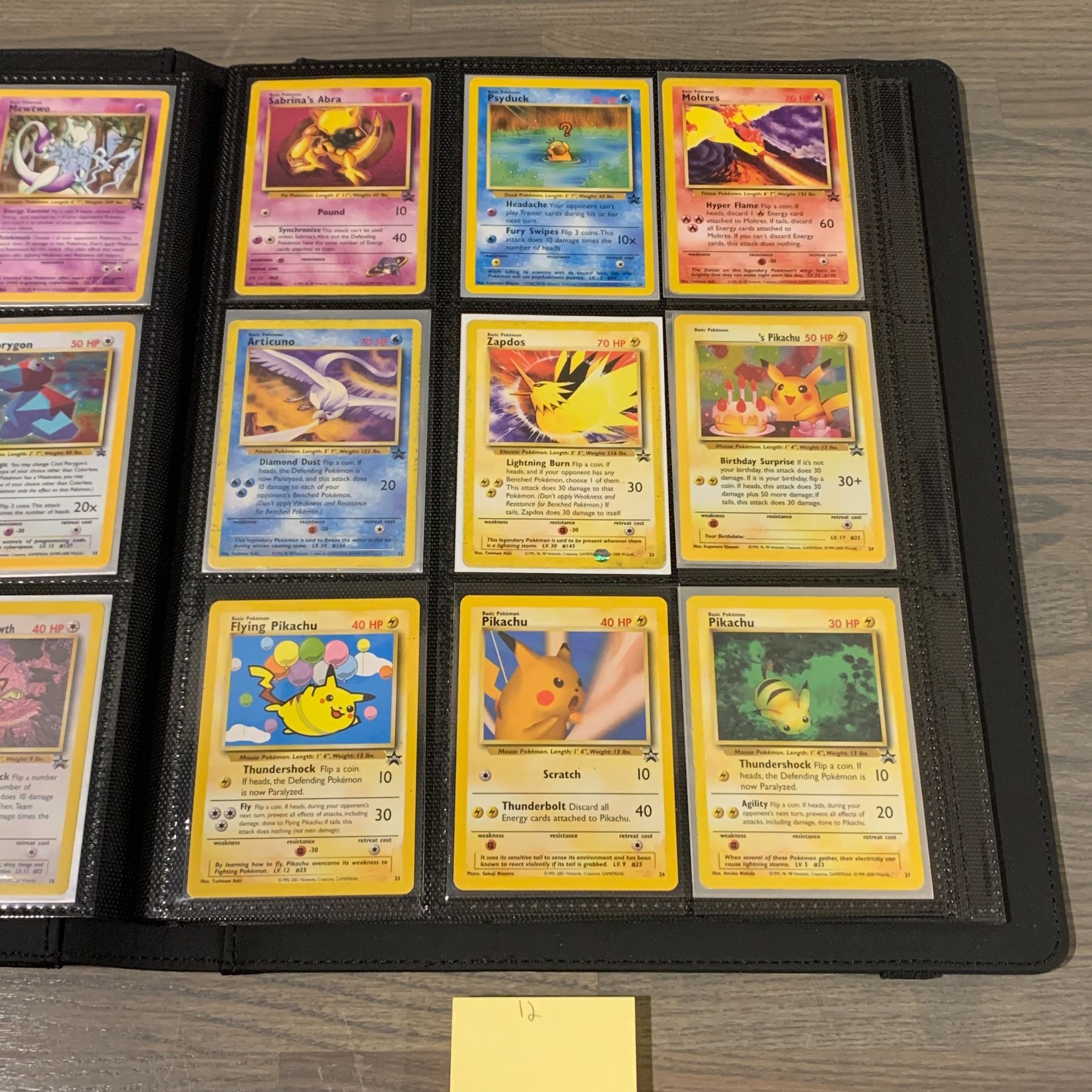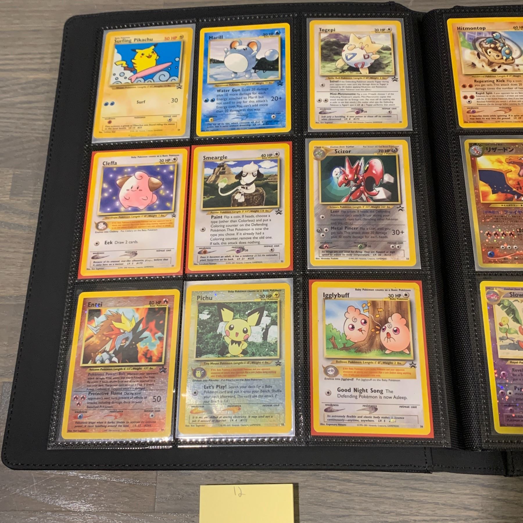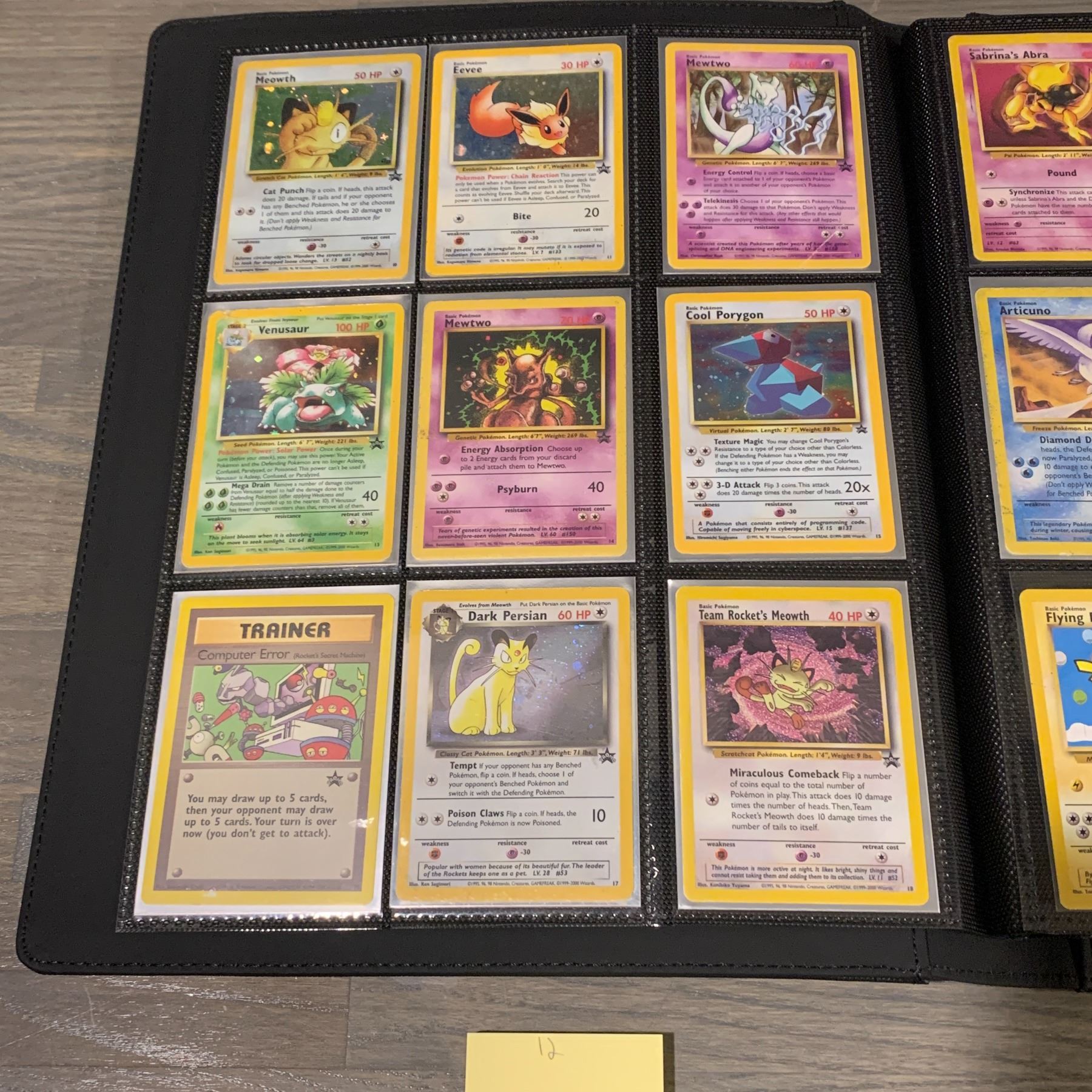 Vintage WOTC Promo Pokemon cards. This binder includes 1-39 vintage WOTC Pokemon Promo cards as well as additional promo Pokemon cards. Prerelease stamped holo Pokemon cards, as well as "W" Stamped Pokemon cards are included. We are a veteran owned company. Please look at the pictures carefully to determine what you believe the condition of collecitible is. We are currently accepting consignments. Email us a aeronhouse1994@gmail.com or visit our website, www.ahauctionhouse.com. We are currently seeking Star Wars related consignments.