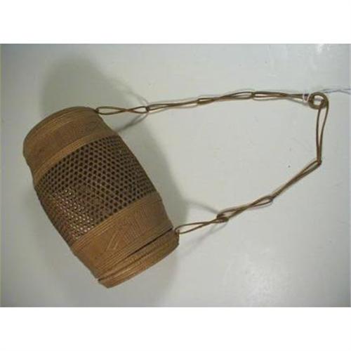 Barrel Shape Cricket Basket in very good condition. No damage, possibly early 20th century, nice patina to the natural, grass/riet material. Dimensions of the Basket 5 1/2 x 3 1/2 inches. Buyer pays S/H insurance $ 15.00.