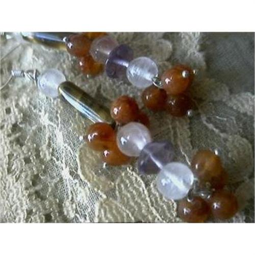 <p>STERLING SILVER Estate AMETHYST AND CARNELIAN AND QUARTZ AND TIGER EYE Earrings