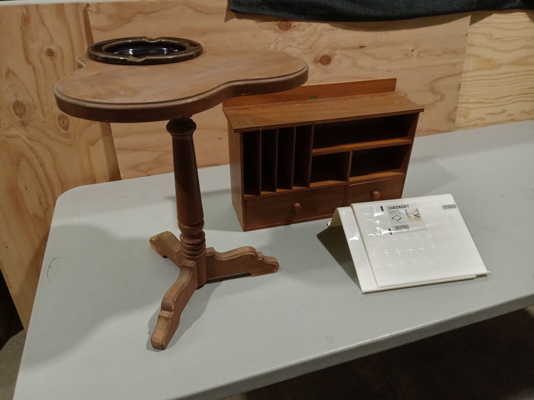 WRITING DESKTOP/SECRETARIAT - VERSATILE Incl's: 'CLUB' SHAPED PEDESTAL END TABLE W/ CERAMIC DISH & 2-ELECTRONICS' STANDS