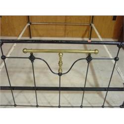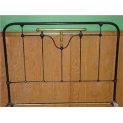 Wrought iron and brass bed. Overpainted with black paint. 54.5" H to top of headboard, 53" W