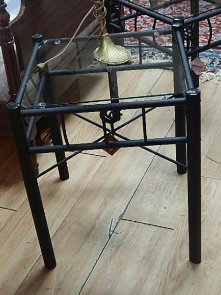 WROUGHT IRON AND GLASS END TABLE - NEW