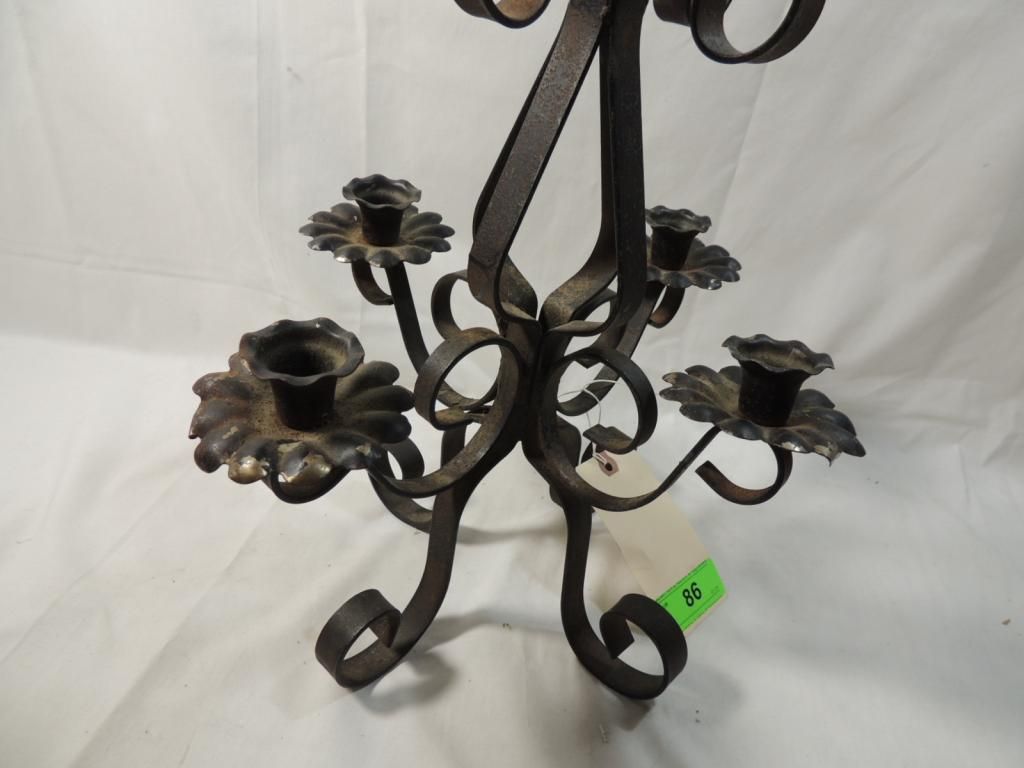 WROUGHT IRON CANDLEABRA AS SHOWN. SEE PHOTO FOR MORE DETAILS.