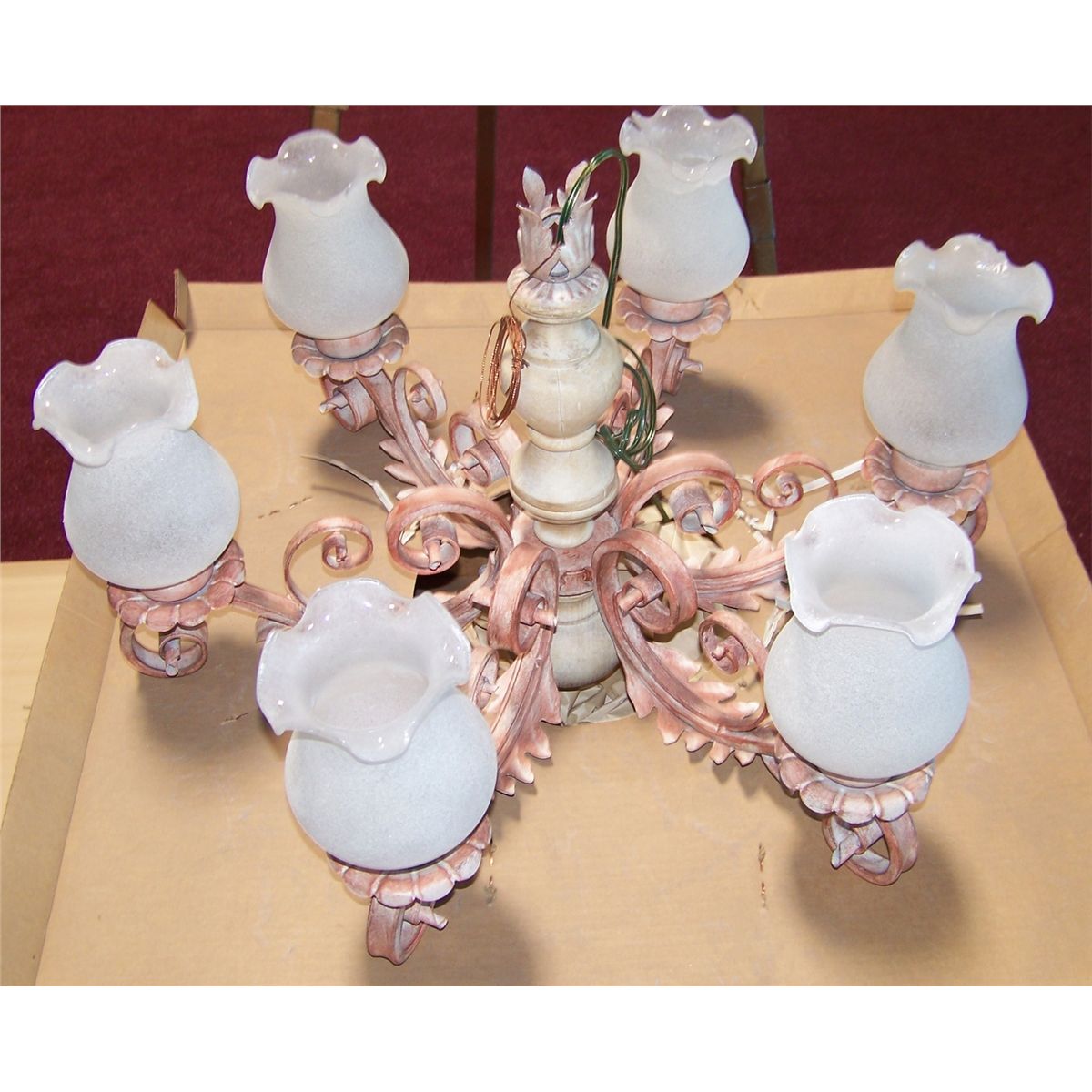 WROUGHT IRON CUSTOM (6) LAMP CHANDELIER, NEW