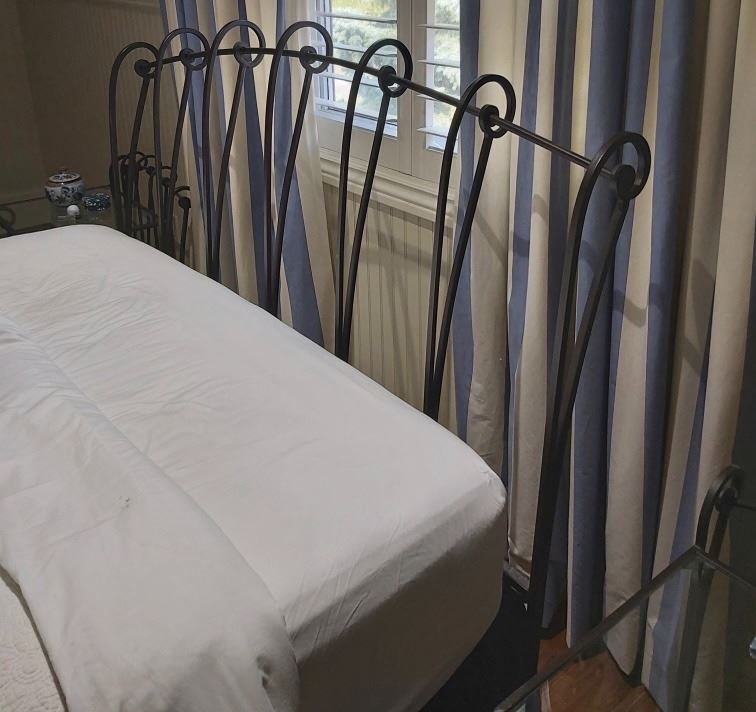 WROUGHT IRON QUEEN SIZE BED - HEADBOARD W/ RAILS
