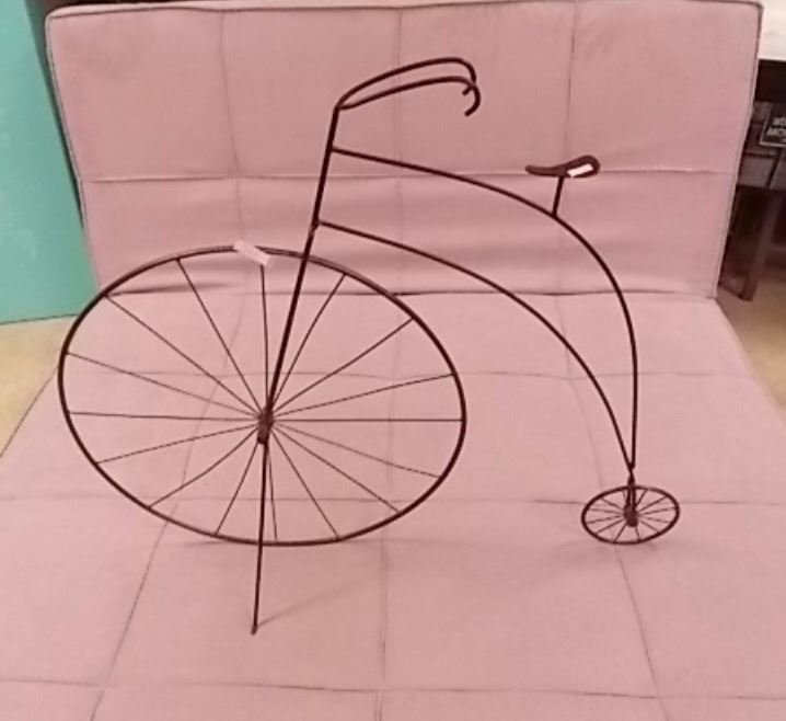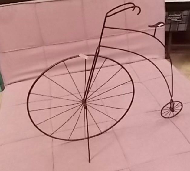 WROUGHT IRON YARD ORNAMENT - PENNY FARTHING BIKE APPROX 3' TALL