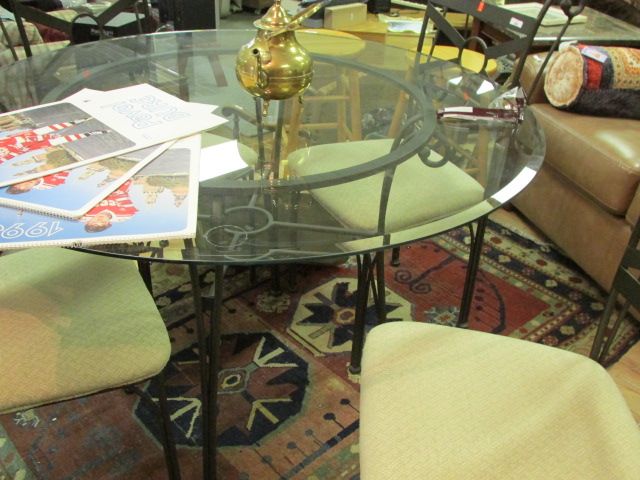 WROUGT IRON - GLASS TOP DINING TABLE ONLY 6 MONTHS OLD