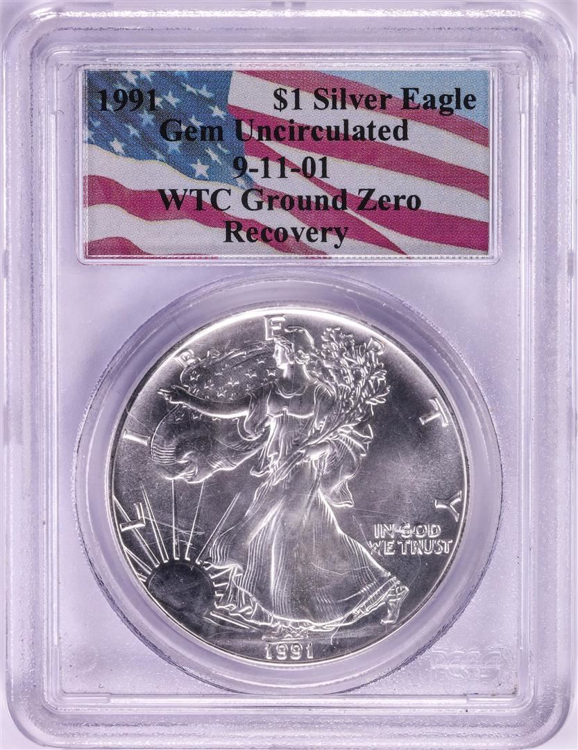 WTC Ground Zero 1991 $1 American Silver Eagle Coin PCGS Gem Uncirculated