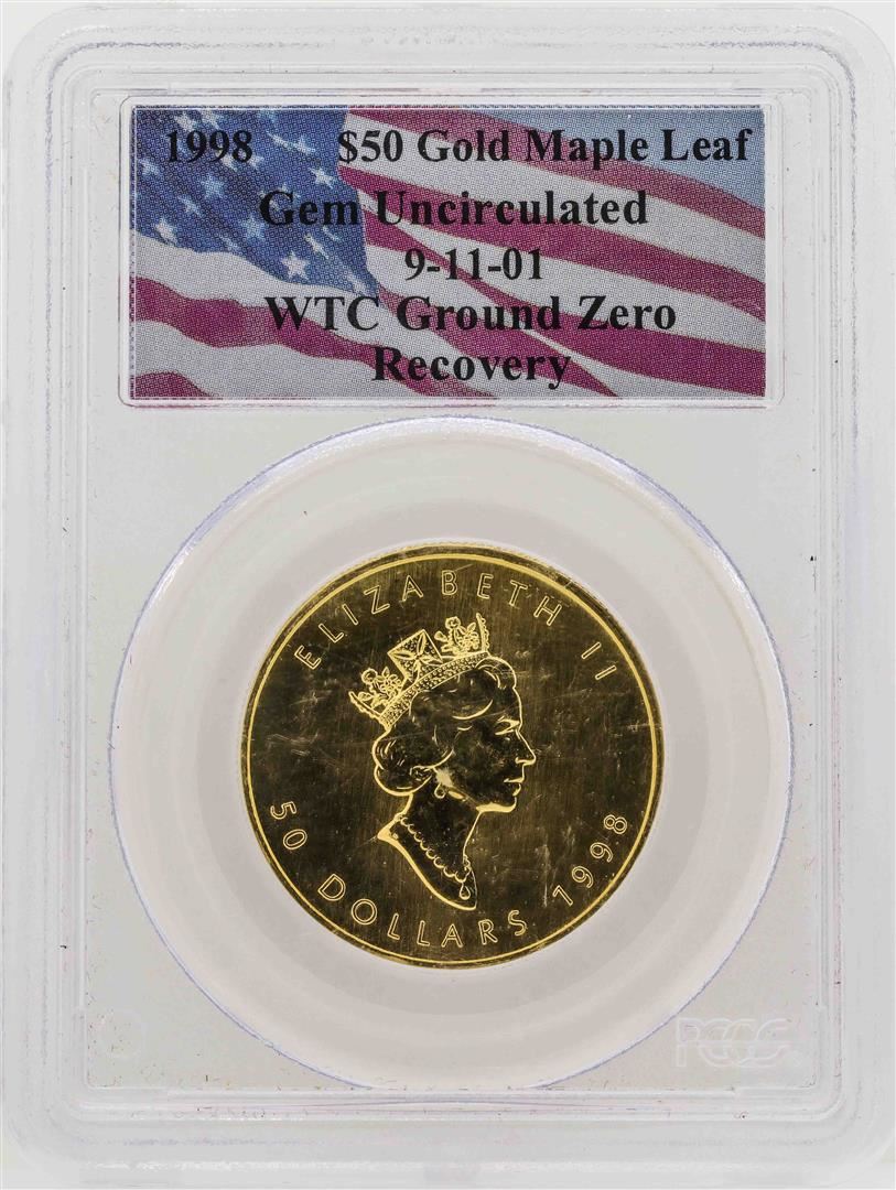 One WTC Ground Zero Recovery 1998 $50 Canada 1 oz. Maple Leaf Gold Coin PCGS Gem Uncirculated. PCGS Graded.