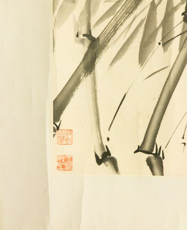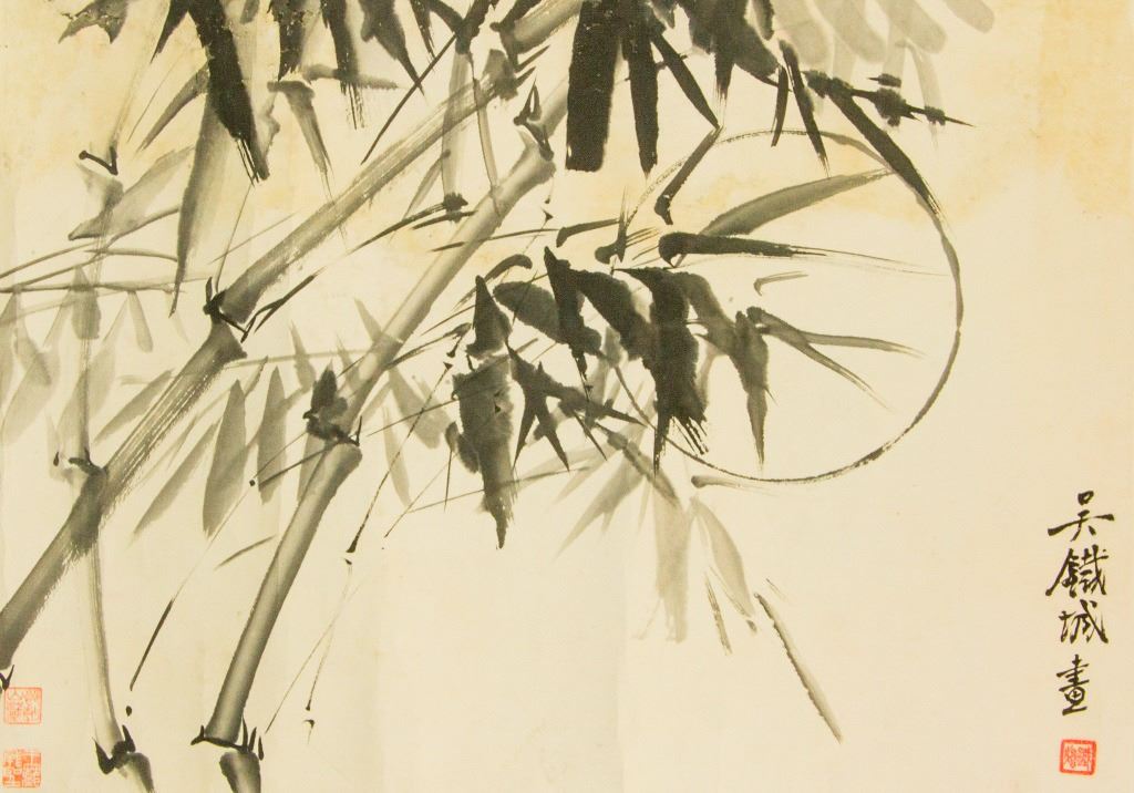 Ink on paper roll, featuring bamboo, signed Wu Tiecheng (Chinese, 1888-1953); inscribed with 3 artist seals; 59.5 cm × 43 cm