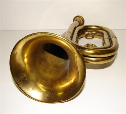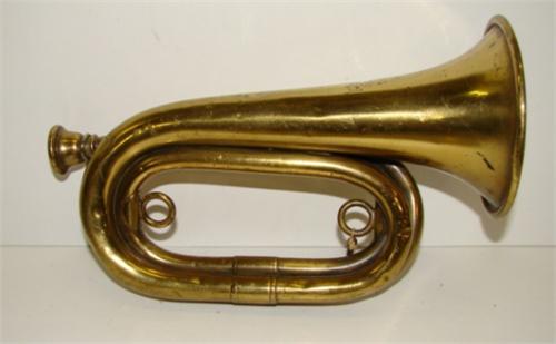 WURLITZER WORLD WAR I BUGLE. Marked "WURLITZER/PHILA. DEPOT/SPEC. 1152/6-17-13". Shows signs of wear and some denting. 8.5" L