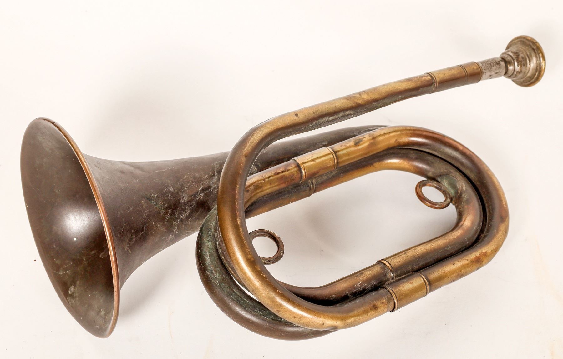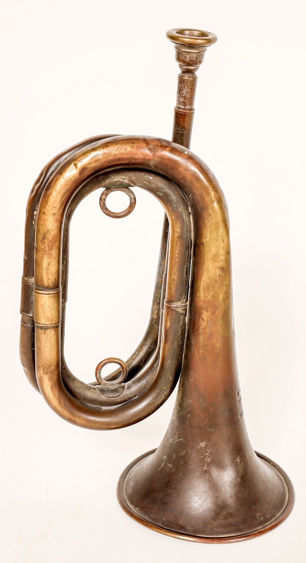 WW1 US bugle with horn inscription H N White/Spec 1152/53/Phila. Depot. 9.5" long with mouthpiece. 1" dent on top of narrow section of horn. Please inspect.