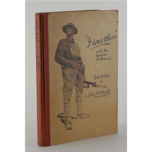 <B>World War I Memoir Inscribed to President Wilson</B></I> <I>"I Was There" With The Yanks On The Western Front, 1917-1919</B></I> by C. LeRoy Baldridge. (New York: G.P. Putman's Sons, 1919). First edition, not stated. Unpaginated, black and white and color plates. Extensively illustrated memoir in picture and verse of life on the Western Front during World War I, with verses by Hilmar R. Baukhage. Baldridge's sketches were made during a year's service with the French army and a year's service with the AEF on special duty with the AEF newspaper "Stars & Stripes." Presentation copy inscribed by Baldridge to President Woodrow Wilson. On the front free endpaper, Baldridge has drawn an image of a soldier (possibly, a self-portrait?), underneath the inscription: "<I>To President Wilson, Here's Looking at you Sir! C. Le Roy Baldridge -</B></I>" He has also signed and dated the drawing at the bottom of the page. Good, slight chipping to the edges of the pictorial board covers, two water spots on the front cover, from cover loose. Extremely interesting and unusual.