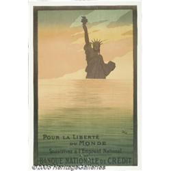 <B>Pour la Liberté du Monde (Circa 1918)</B></I> WWI Poster (40" X 60"). Liberty rising from the sea by SEM (1863 - 1934), cipher for Georges Marie Goursat. Famed as a caricaturist of the foibles of Paris' fin de siecle demimonde, SEM turned quiet serious and profound when called upon to urge his countrymen to the French version of war bonds. The Statue Of Liberty was, of course, a gift from France to the United States, but it was and still is a potent symbol of freedom in its native land. Fine+ condition on Linen.