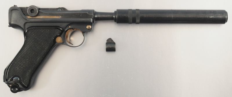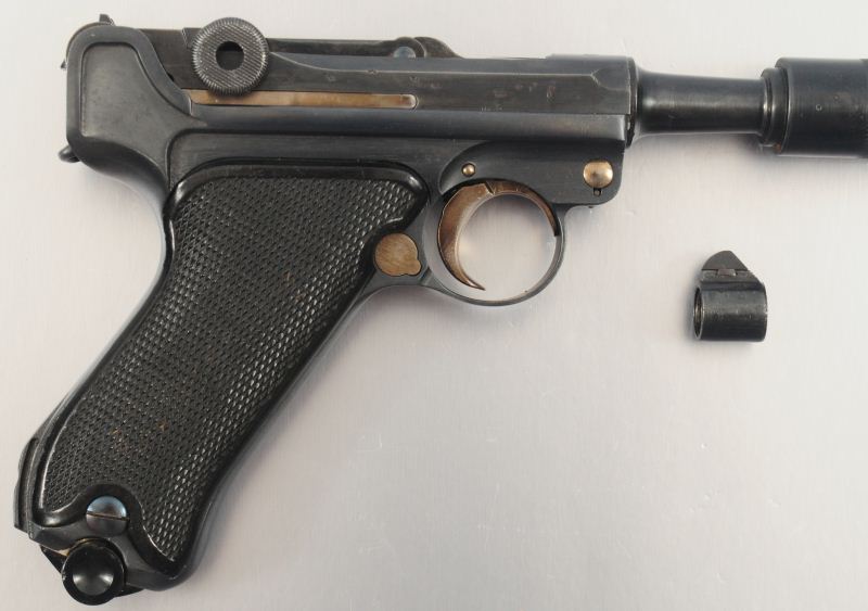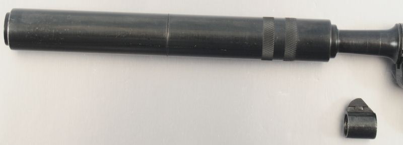 9mm, Retains Nazi Markings, Comes with 1920 Commercial Silencer Unit & Barrel Band in Front Sight. Supressor is an empty tube & has been deactivated. Supressor has been hollowed out to meet all NFA requirements. Serial #6652